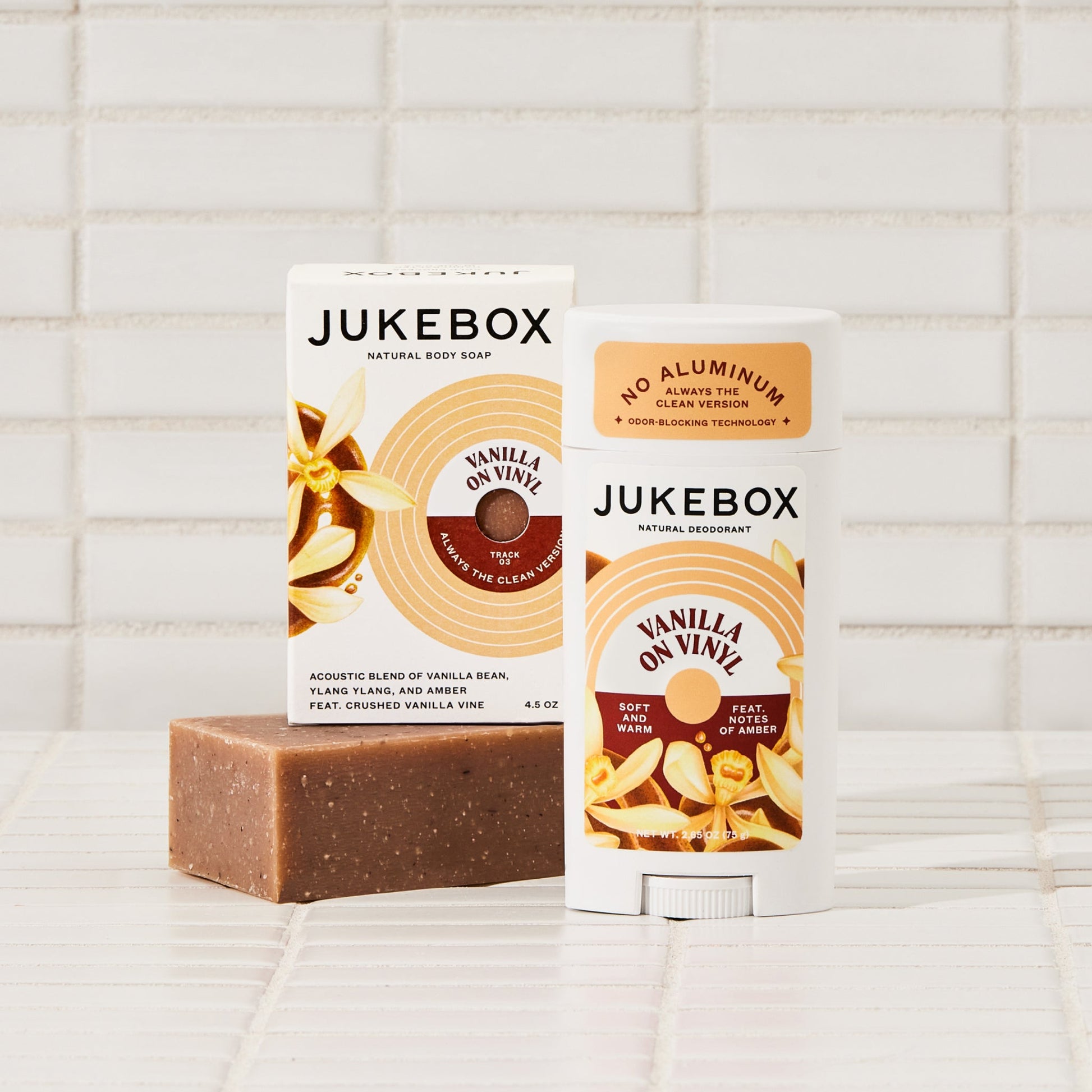 One natural cold process soap and one natural deodorant, all in our cult-classic Vinyl on Vinyl scent.