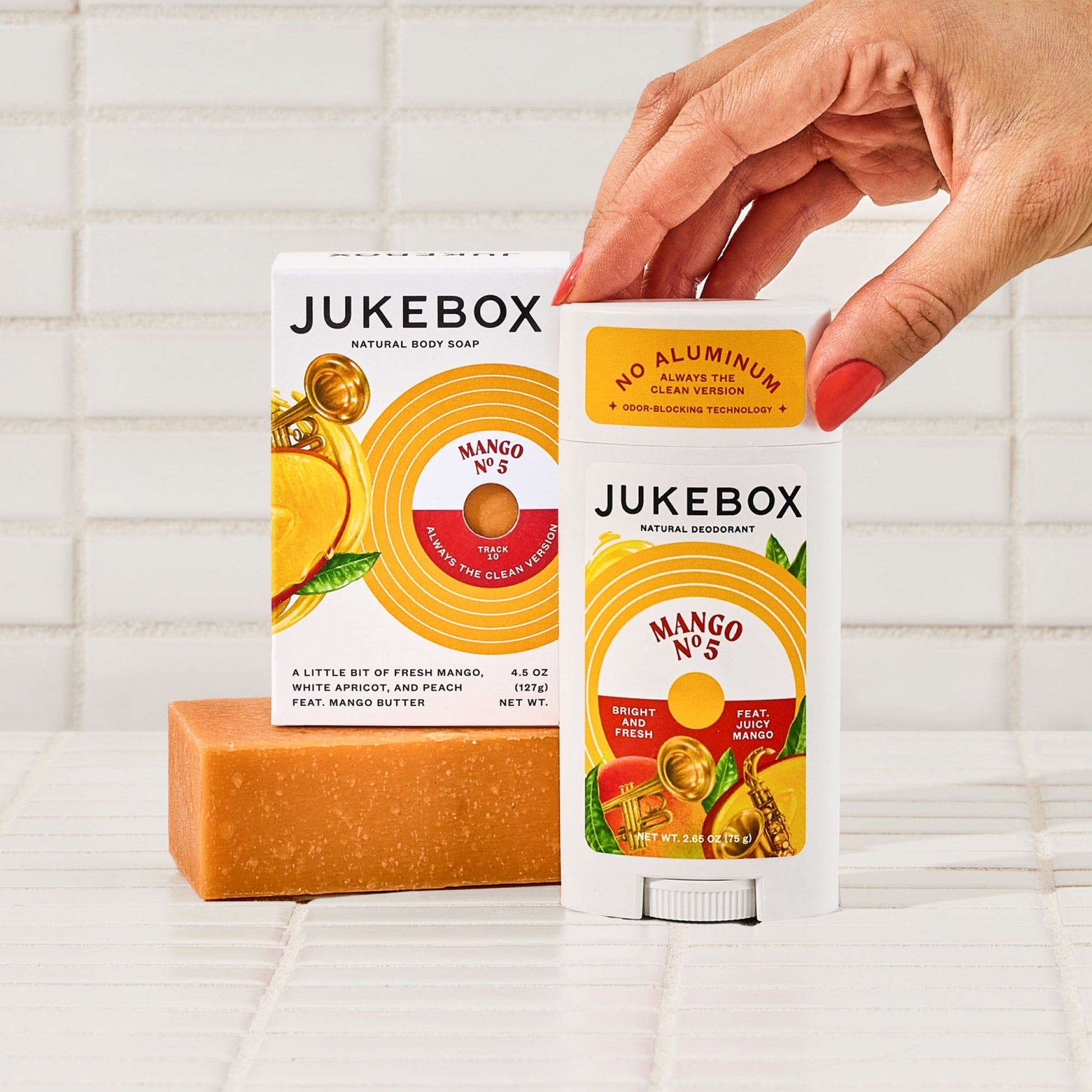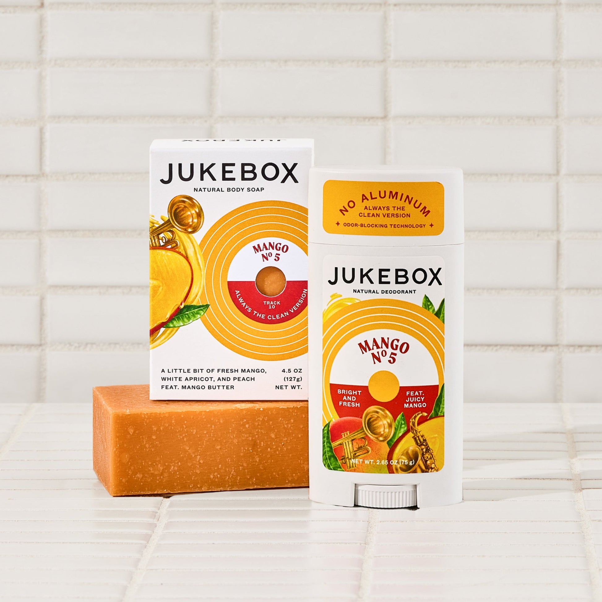 One natural cold process soap and one natural deodorant, all in our juicy Mango No. 5 scent.